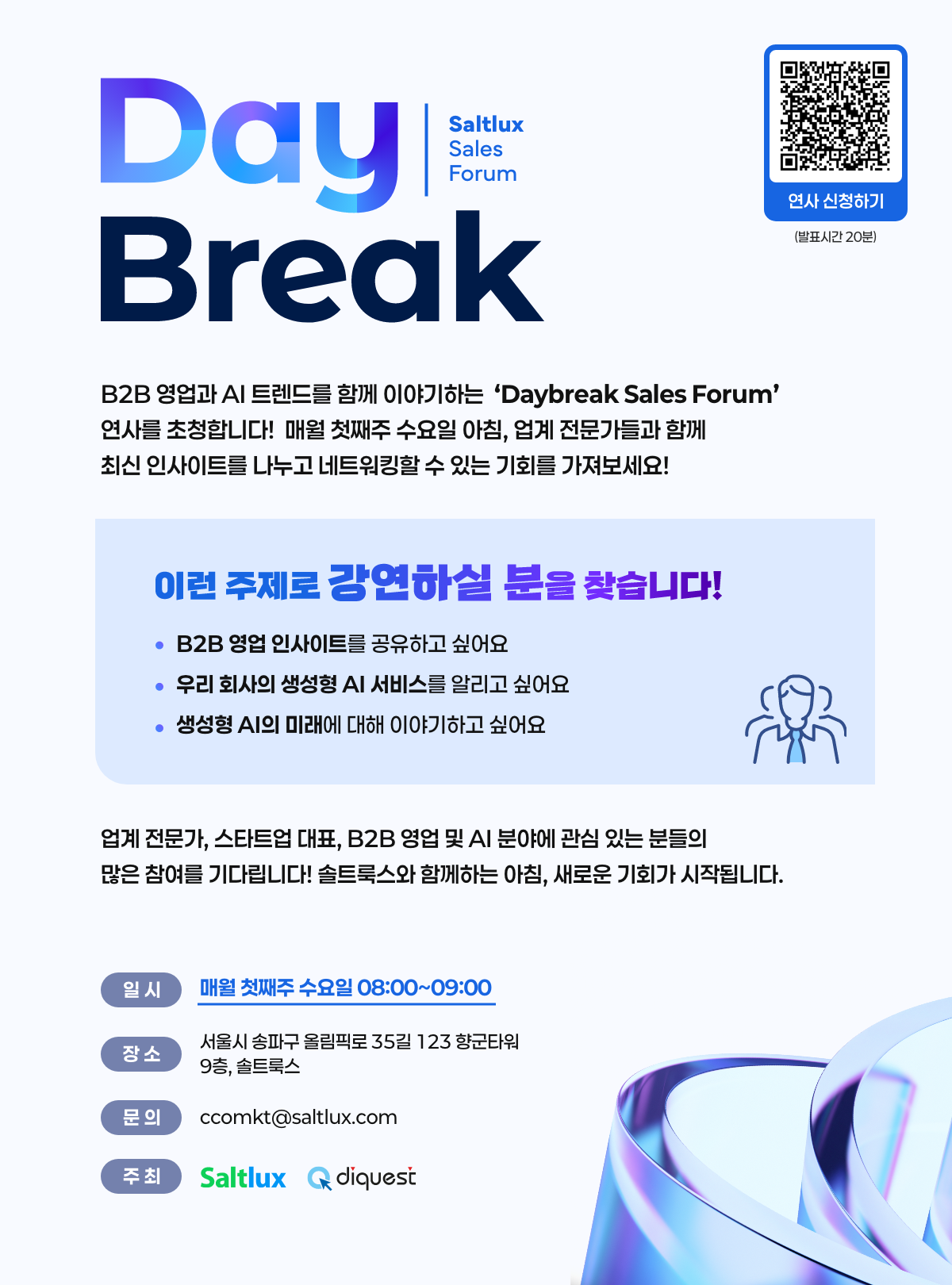 < 솔트룩스 ‘Daybreak Sales Forum’ 연사 초청 >